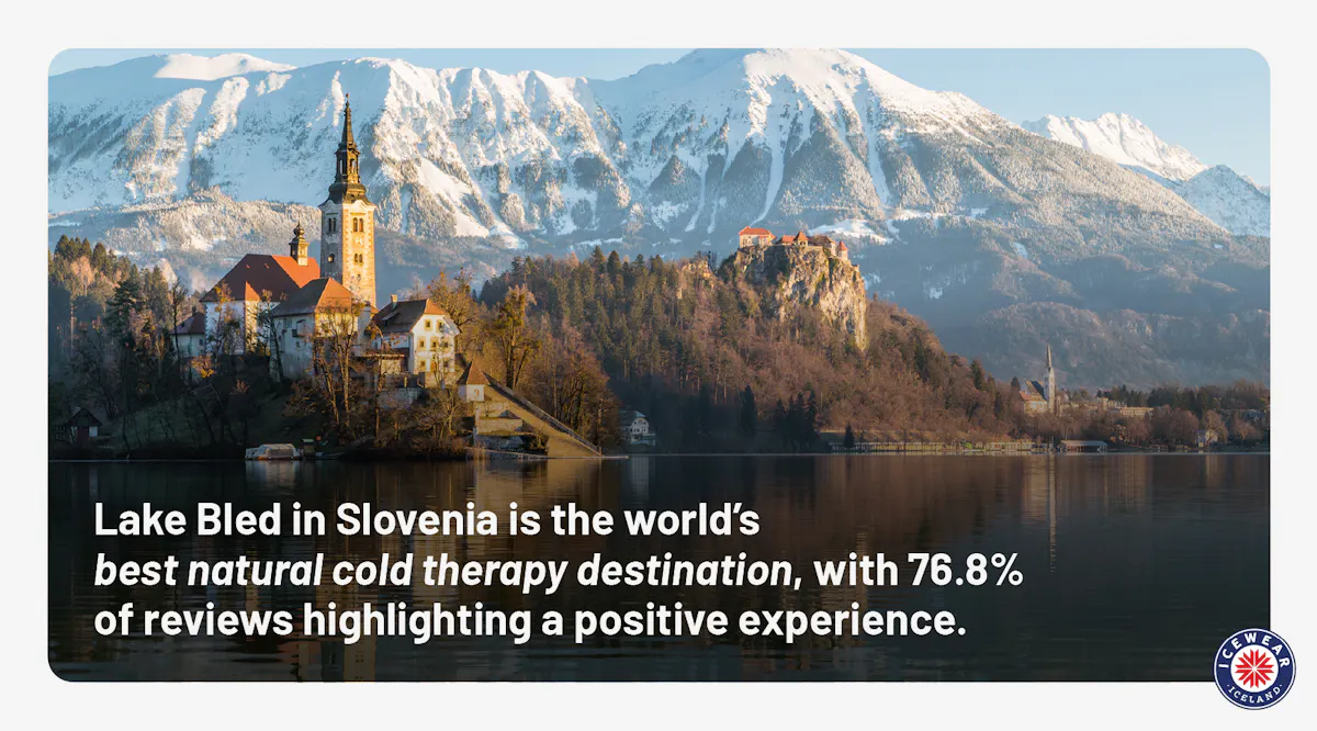 Lake Bled in Slovenia is the world’s best destination for natural cold therapy with 76.8% of reviews celebrating a positive experience.